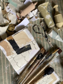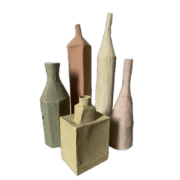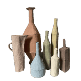 Clay took over as a primary interest during the pandemic. Kate’s motivation was to impart a sense of energy, ideas & emotion within the body of her 3D pieces, utilising all the hand-build methods of Coil, Slab & Pinch. Her process moves between spaces, from inside the home through winter to the garden in warmer months, firing her pieces in the old bike shed. Kate began creating vessels from paper because she liked how its sound and texture differed to clay, and to make use of an excess of leftover materials. “Paper is a humble material” she says “with endless possibilities”.